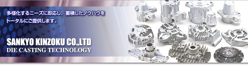 特に近年では、ダイカスト技術の進歩とダイカスト製品に対する高度な技術要求、および品質レベルアップを満たすため、研究、技術開発部門を充実させるとともに最新鋭のダイカストマシンを投入。アルミダイカストはもちろん亜鉛合金ダイカストにいたるまで、金型設計により一貫した生産システムを構築し、自動車・コンピュータ・VTR・家電・通信機器といった最先端の産業領域を舞台に、蓄積したノウハウをトータルにご提供申し上げていきます。